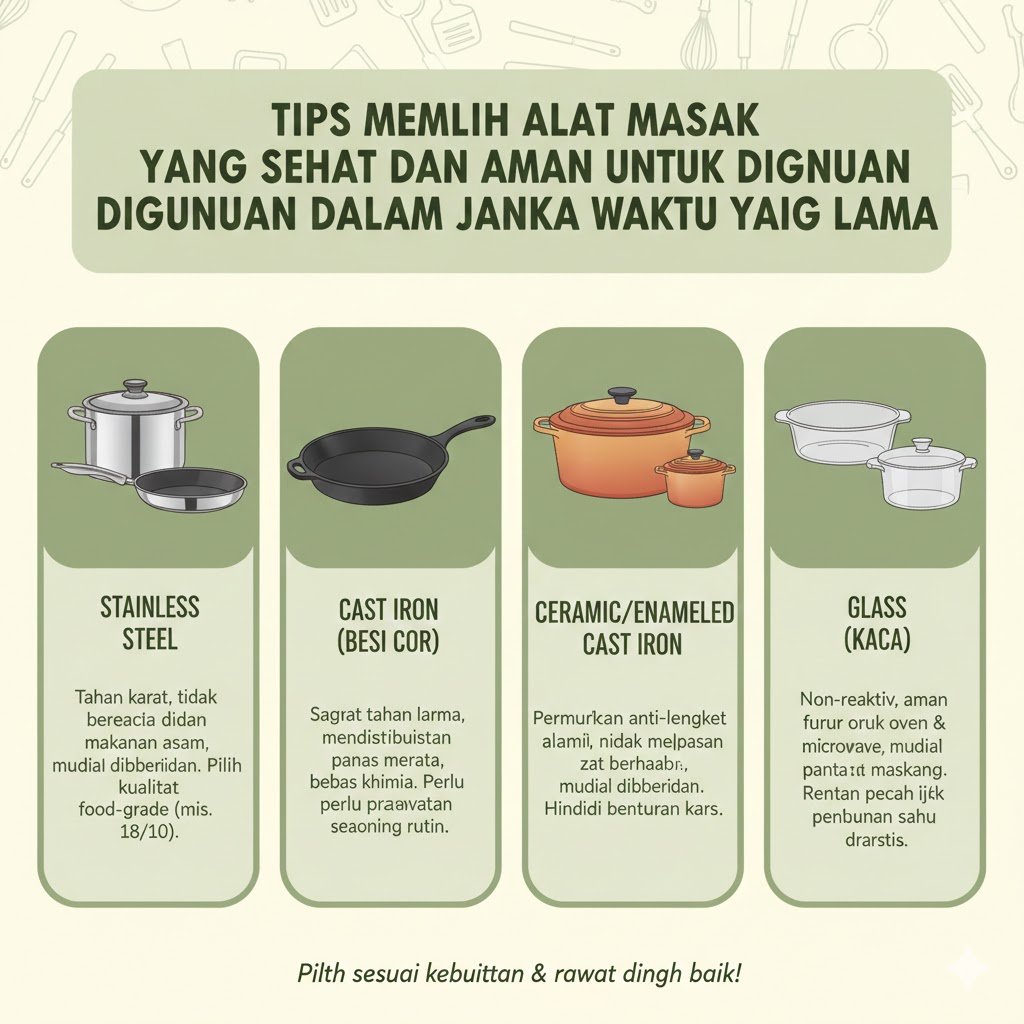 Kesehatan keluarga tidak hanya ditentukan oleh bahan makanan yang segar dan bergizi, tetapi juga oleh peralatan yang digunakan untuk mengolahnya. Banyak orang sering kali mengabaikan material alat masak, padahal reaksi kimia antara suhu panas dan permukaan wajan dapat memengaruhi kualitas masakan. Memilih alat masak yang tepat adalah investasi jangka panjang untuk kesehatan sekaligus efisiensi dapur Anda. Peralatan yang berkualitas tidak akan melepaskan zat beracun ke dalam makanan meski digunakan dalam suhu tinggi secara berulang kali.